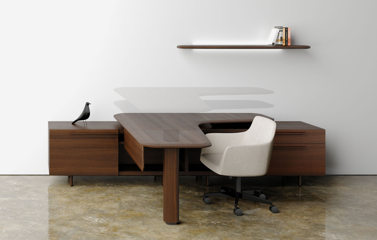A further evolution of the classic Index and IndexLT casegoods collection, IndexR celebrates a modern twist on cane, bringing the warmth and comfort of unexpected contract materials into the workspace. Credenza cases are finely crafted with unparalleled veneer and finish options. Cane doors on overheads offer just the right opaqueness to conceal contents while providing necessary storage.