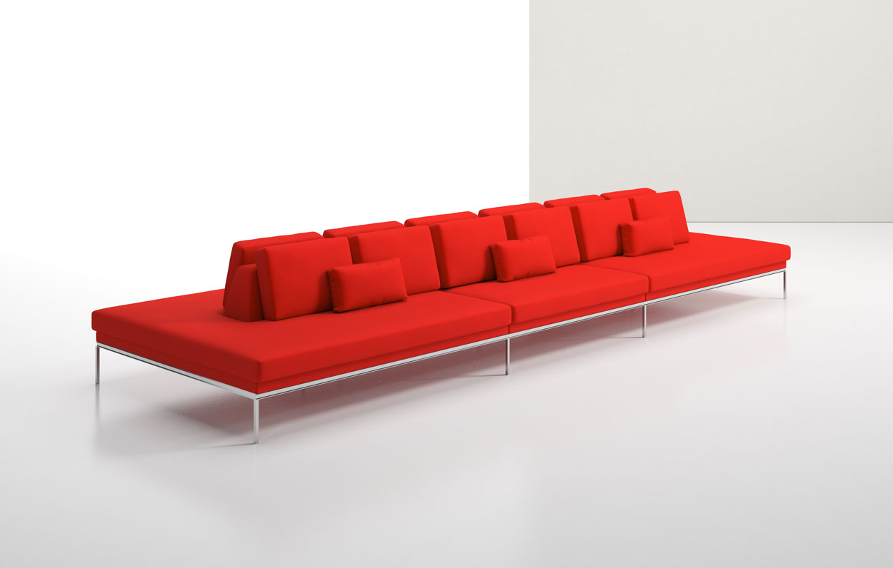 SuperSpan, a luxuriously flexible lounge series by Brian Graham draws inspiration from the workflow and space efficiency demands of the modern built environment. Imagined as a simple extra long platform sofa with a broad range of functional elements, including: back to back seating, storage, tabletops, integrated power and wireless charging, SuperSpan conscientiously supports a vast array of work styles and furniture arrangements within a compact footprint.
